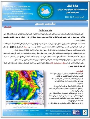 الانواء الجوية: حالة جوية فعالة وشاملة تضرب العراق خلال الساعات المقبلة