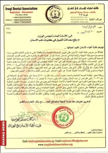 نقابة أطباء الأسنان العراقيين تطالب برفع معدلات القبول