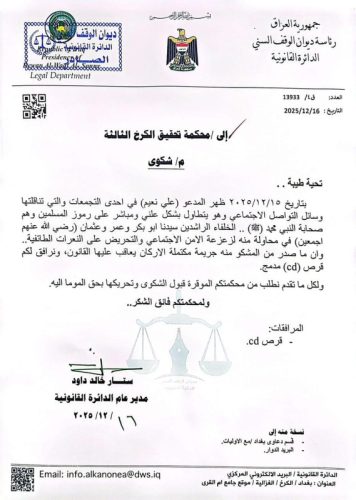 الوقف السني يقاضي “علي نعيم” ويباشر إجراءات إخلاء دار الوقف بالبصرة