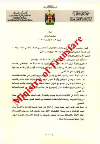 أظهرت وثائق رسمية صادرة عن مجلس الوزراء العراقي، خطة الحكومة لإعادة فرض الضرائب على بطاقات تعبئة الرصيد وخدمات الإنترنت، ضمن حزمة الإصلاحات الاقتصادية التي تهدف إلى زيادة الإيرادات وتحسين الوضع المالي للدولة.