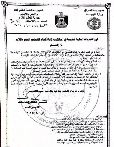 قرار يخص الطلبة الراسبين في مدارس المتميزين وثانوية كلية بغداد
