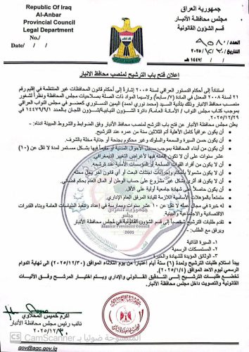 فتح باب الترشيح لمنصب محافظ الأنبار