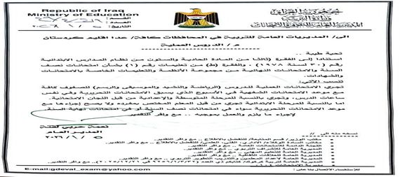 وزارة التربية تعلن مواعيد الامتحانات العملية للمراحل الدراسية كافة