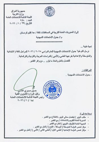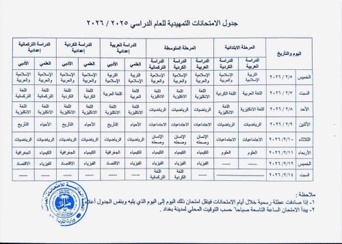 وزارة التربية تعلن جدول الامتحانات التمهيدية للعام الدراسي 2025 / 2026