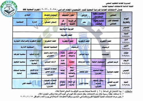 التربية تعلن جدول الامتحانات التمهيدية للفروع المهنية كافة