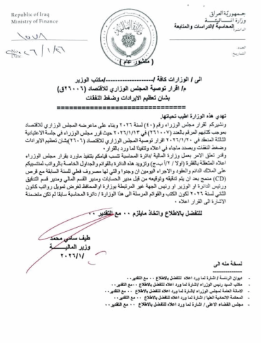 بالوثيقة : وزارة المالية تخاطب الوزارات بشأن الرواتب والتمويل
