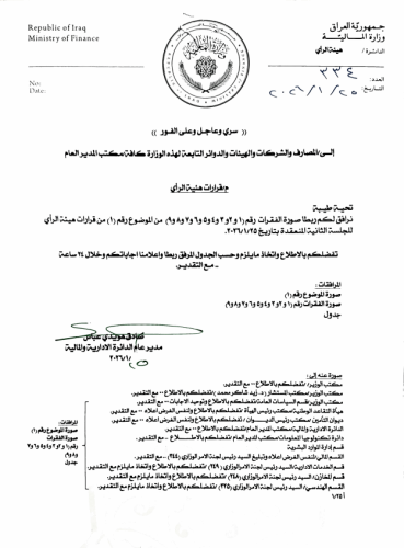 بالوثائق.. المالية تخاطب دوائر الدولة: تخفيض الإيفاد 90% وتقليص وقود السيارات 50%