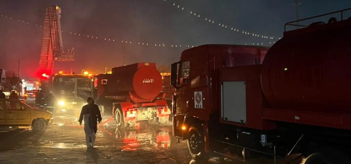 الدفاع المدني تُسيطر على حريق داخل بناية تجارية بمنطقة الزعفرانية ببغداد