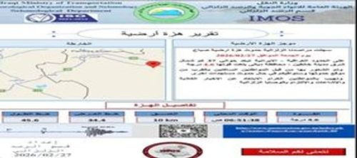 وذكر بيان للهيئة ، أن “المراصد الزلزالية سجلت حدوث هزة أرضية بلغت قوتها (4,6) درجات في الحدود العراقية- الإيرانية” شمال شرق مدينة خانقين في محافظة ديالى”، لافتا الى أنه “تم الشعور بها من قبل المواطنين الساكنين بالقرب من موقع حدوثها”.انتهى