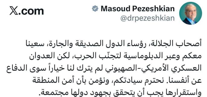 تغريدة بزشكيان للدول العربية