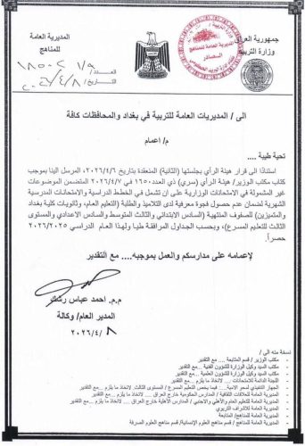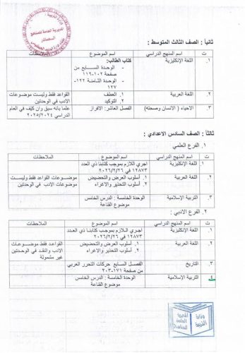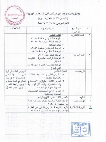التربية تعلن جداول الموضوعات غير المشمولة بالامتحانات الوزارية