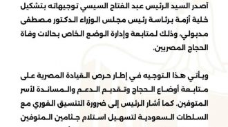 السيسي يصدر توجيهاته بتشكيل خلية أزمة برئاسة مدبولي لمتابعة وفيات الحجاج المصريين