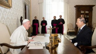 وكالات ـ الرأي ـ بعث البابا فرنسيس، رسالة شكر إلى الرئيس اللبناني، ميشال عون، لمعايدته بعيد الفصح، وفق ما أفادت به الرئاسة اللبنانية. وعلى حسابها في “تويتر”، قالت الرئاسة المزيد