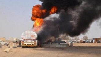 احتراق صهريج لنقل المشتقات النفطية جنوب كركوك