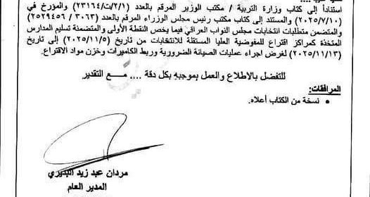 محلي ـ الرأي ـ قررت وزارة التربية ، اليوم الثلاثاء و بناء على طلب من المفوضية، تعطيل الدوام الرسمي لأكثر من أسبوع خلال العام الدراسي المقبل 2025 – 2026 وذلك بالتزامن مع الانتخابات التشريعية المزمع اجراؤها في شهر تشرين الثاني المقبل من العام الحالي. وتضمن القرار “تسليم المدارس المتخذة كمراكز اقتراع إلى المفوضية العليا المستقلة المزيد