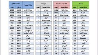 محلي ـ الرأي ـ سجلت المختبرات الطبية في إقليم كوردستان خلال آخر 24 ساعة 1159 إصابة جديدة بفيروس كورونا ليرتفع إجمالي العدد إلى 135815. وتوزعت الإصابات الجديدة على هذا المزيد