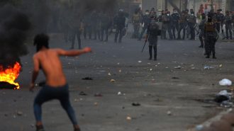 اصابات بين المتظاهرين نتيجة تفريق بالقوة وسط بغداد