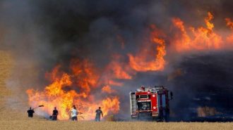 حريق كبير يلتهم أراضي زراعية ويتسبب بسقوط خطوط الضغط العالي للطاقة في بابل