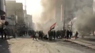 متظاهرون يغلقون شارع وسط النجف بالإطارات المحترقة