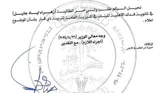 وزير التربية يوافق على امتحان الطالبة زهراء إياد بالانابة