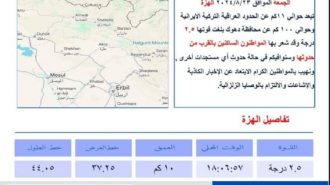 تسجيل هزة أرضية قرب الحدود العراقية التركية الإيرانية
