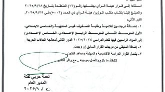 وزارة التربية تصدر قرارات جديدة لمعالجة الحالات الحرجة لطلبة هذه الصفوف