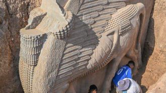 الآثار والتراث : استظهار ثور مجنح يعود إلى العصر الآشوري