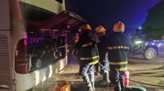 السيطرة على حريق اندلع في باص كان يقل زوارا إيرانيين في الانبار