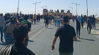 متظاهرون يعبرون الحاجز الأول من جسر الجمهورية وسط بغداد