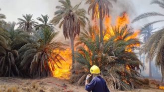 إخماد حريق كبير اندلع داخل مناطق زراعية وبساتين للنخيل في المثنى