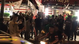 عشرات المحتجين يتظاهرون امام السفارة التركية في بغداد