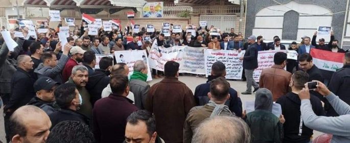 منتسبو الداخلية من خريجي المعاهد يتظاهرون قرب منزل الصدر بالحنانة للمطالبة بتحويلهم للصنف المدني