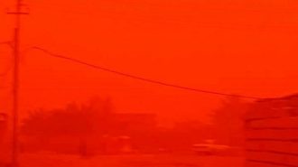 عاصفة ترابية تحول سماء الانبار الى حمراء