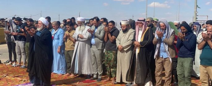 حشود من العراقيين تقيم صلاة الجمعة على الحدود الاردنية نصرة لغزة