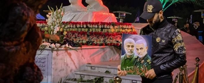 المئات من أنصار الحشد يحيون ذكرى اغتيال الشهيدين سليماني والمهندس قرب مطار بغداد