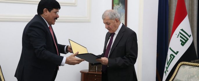 سياسة ـ الرأي ـ تسلم رئيس الجمهورية عبد اللطيف جمال رشيد، اليوم الثلاثاء، رسالة تهنئة من الرئيس السوري بشار الأسد. وذكر إعلام رئاسة الجمهورية في بيان تلقت *الرأي* الدولية نسخة منه، ان “رئيس الجمهورية عبد اللطيف جمال رشيد استقبل اليوم، في قصر السلام ببغداد، سفير الجمهورية العربية السورية لدى العراق صطام جدعان الدندح”. وأضاف البيان، المزيد