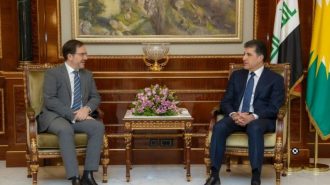 سياسة ـ الرأي ـ استقبل رئيس حكومة كردستان العراق “نيجيرفان بارزاني”، اليوم الأربعاء، “مايك برايسون ريتشاردسون” سفير بريطانيا في العراق ووفداً مرافقاً له. وناقش الطرفان خلال الاجتماع، التطورات الأخيرة المزيد
