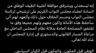 المشهداني يعلن حسم خلاف رئاسة البرلمان وموافقة الأغلبية على ترشيحه للمنصب