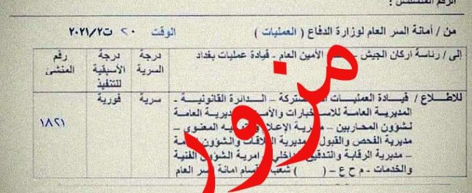 امن ـ الرأي ـ نفت وزارة الدفاع، السبت، موافقة القائد العام للقوات المسلحة على عودة نظام البديل للإجازات. وذكر بيان للوزارة تلقت *الرأي* الدولية نسخة منه، انه تناقلت بعض صفحات مواقع التواصل الاجتماعي خلال الساعات الماضية كتاباً مزوراً بخصوص “موافقة السيد القائد العام للقوات المسلحة على عودة نظام البديل للإجازات”، وتوكد وزارة الدفاع أن هذا المزيد