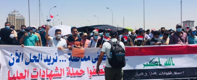 قوة أمنية تفض اعتصام حملة الشهادات العليا وسط بغداد