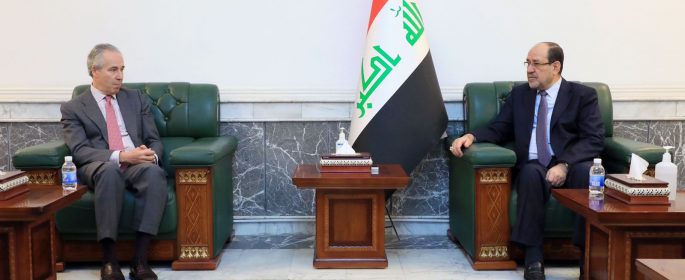 سياسة ـ الرأي ـ أكد رئيس ائتلاف دولة القانون نوري المالكي، الثلاثاء، ان ازمة نتائج الانتخابات دوافعها اقليمية دولية وعنوانها هو الصراع على العراق والمنطقة. وذكر بيان لمكتب المالكي، ان”الاخير استقبل سفير اسبانيا لدى العراق بيدرو مارتينيث وأبدى ترحيبه بالسفير ، متمنيا له النجاح في مهمته الجديدة سفيرا لبلاده في بغداد ، مؤكدا أن العراق المزيد