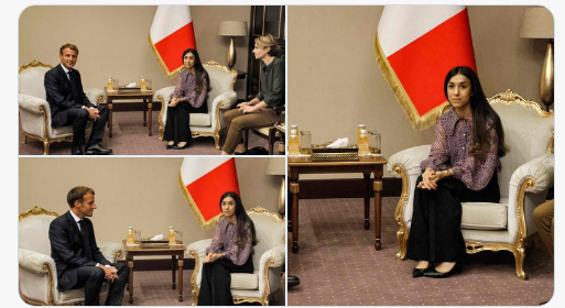 ماكرون يلتقي الناشطة الإيزيدية نادية مراد في بغداد ويعلق: حماية المرأة كفاح نحمله معا