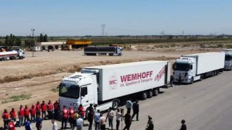 40 شاحنة عراقية محملة بالغذاء والدواء تتجه الى بيروت