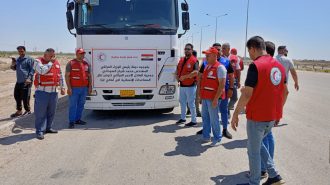 انطلاق القافلة الغذائية العراقية برياً الى غزة