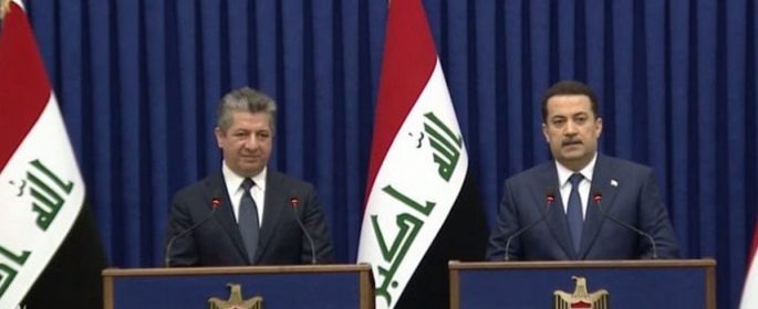 سياسة ـ الرأي ـ أعلن رئيس الوزراء محمد شياع السوادني، اليوم الثلاثاء، الاتفاق على استئناف تصدير نفط إقليم كردستان مؤكدا على الجهات الفنية المباشرة فوراً بتنفيذ الاتفاق مع أربيل. وقال السوداني خلال مؤتمر صحفي مشترك مع رئيس وزراء إقليم كردستان مسرور بارزاني،”على الجهات الفنية المباشرة فوراً بتنفيذ الاتفاق مع أربيل وإيجاد السبل القانونية لهذا الأمر”. المزيد