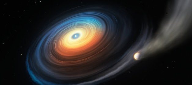 نشرت وكالة الفضاء الدولية ناسا، مقطع فيديو يعرض حركة ضوء القرص التراكمي (المكون من الغاز والغبار الكوني) المحيط بثقبين أسودين. وتظهر المحاكاة، الثقبين على شكل هالة مزدوجة، وعندما يمر المزيد