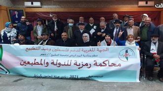 نظمت الجبهة المغربية لدعم فلسطين وضد التطبيع، يوم السبت، بمقر نادي هيئة المحامين بالرباط، محاكمة رمزية للتطبيع والمطبعين، توزع فيها المشاركون إلى مترافعين يقدمون دفوعاتهم ومرافعاتهم القانونية إلى رئيس المزيد